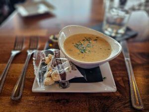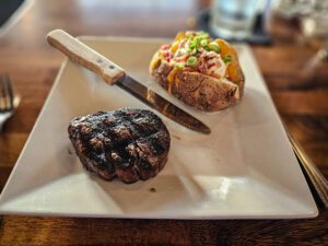 Part of what drew us to Scotties was their highly recommended she-crab soup, and Scotties did not disappoint. There were mounds of crab meat in this soup which was unbelievably creamy with a rich flavor and a splash of sherry. We paired that with a house salad and a center cut filet mignon which was unbelievably tender and seasoned perfectly.