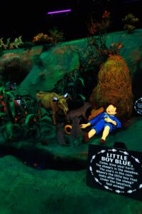 The Bridges Trail gives you access to two separate bridges: the Swing-A-Long Bridge and the Stone Bridge. I took the Stone Bridge, the Swing-A-Long Bridge was just a little too much for me. The Grand Corridor trail takes you through the Needle’s Eye and the Goblin’s Underpass while the Fairyland Caverns trail allows you to explore scenes from your favorite Fairy Tales. You begin and end your journey at the Gardens Gateway area.