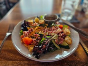 Let me be perfectly honest, I thought this might be the biggest mistake of our trip. After all, the restaurant’s logo included a purple donkey, yes, I said a purple donkey. But it wasn’t. The Purple Daisy Picnic Café was an adorably decorated, homespun delight.
