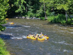 I chose one of these and enjoyed watching as bright yellow inner tubes floated down the river. As I waited for my meal, I watched several groups formed bands of inner tubes clustered together like a chain of golden marigolds sailing down the river. This peaceful setting made me long for more time to enjoy my final moments away from the hustle and bustle of Knoxville.