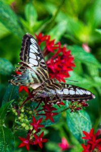 Reluctantly, we turned away from the shore for our first stop – Mackinac Island Original Butterfly House. This indoor garden is home to over 1000 butterflies imported from around the world. Vibrant butterflies flitted from flower to flower and even landed on Hubby’s sleeve.